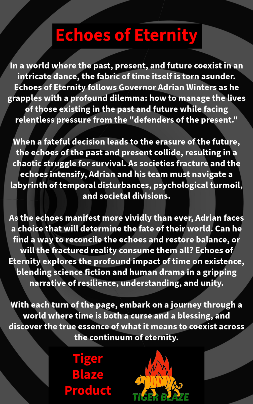 In a world where the past, present, and future coexist in an intricate dance, the fabric of time itself is torn asunder. Echoes of Eternity follows Governor Adrian Winters as he grapples with a profound dilemma: how to manage the lives of those existing in the past and future while facing relentless pressure from the "defenders of the present."